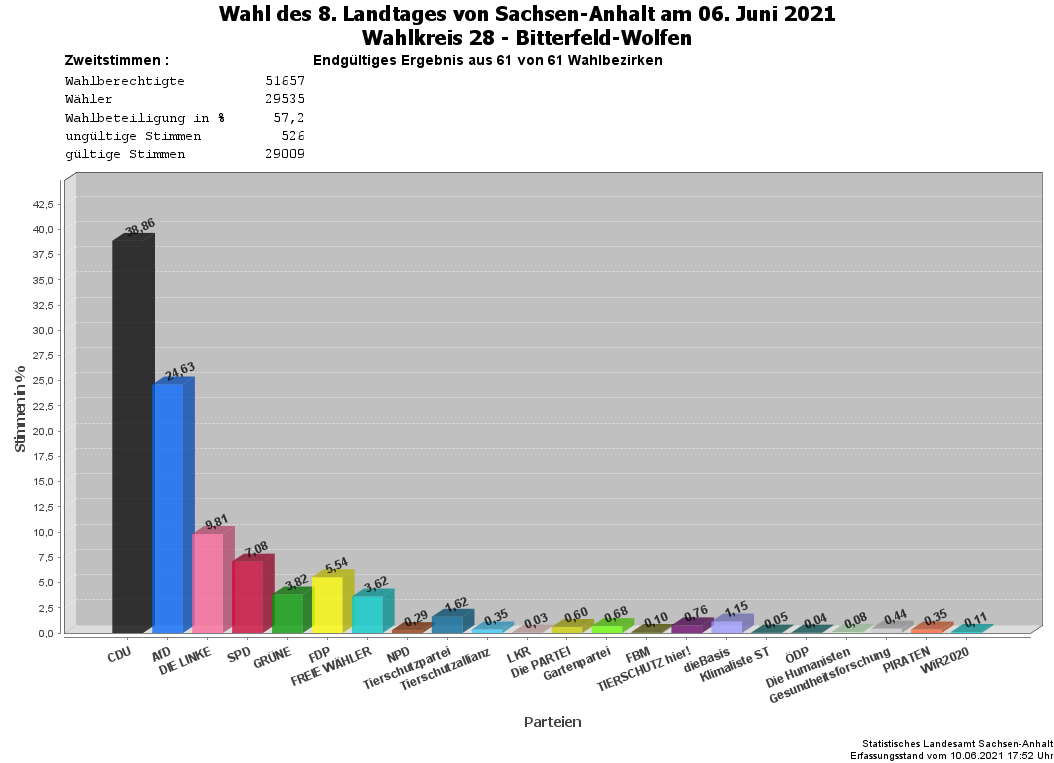 Ergebnis der Landtagswahl im Wahlkreis 28 Bitterfeld-Wolfen