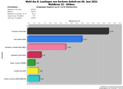 Ergebnis der Landtagswahl im Wahlkreis 22 Köthen