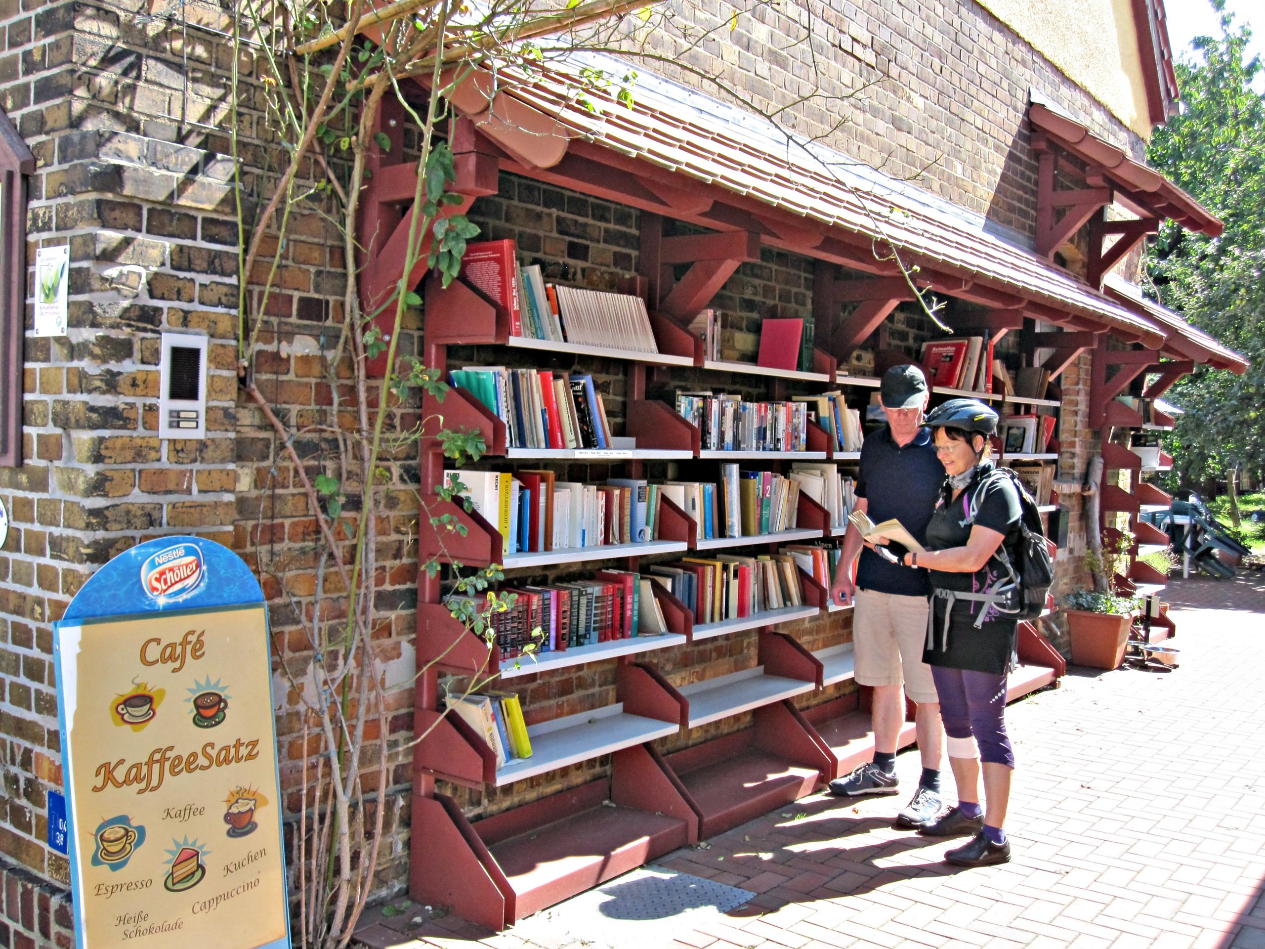 Dem Mulderadweg folgend führt dieser entlang des Großen Goitzschesees zum Buchdorf Mühlbeck-Friedersdorf. Bereits 1997 gründeten 34 Mitglieder den Förderverein des Buchdorfes Mühlbeck-Friedersdorf e. V. und schufen damit die Grundlage für Deutschlands 1. Buchdorf. Am Vorbild der ersten 1961 begründeten „booktown“ der Welt im englischen Hay-on-Wye waren bereits Jahre zuvor mehrere vergleichbare Orte in ganz Europa entstanden. In den Regalen der Antiquariate stehen unzählige Bände und warten auf interessierte Besucher, Leser und Sammler. Sie sind eine wahre Fundgrube an Literatur aller Genres. Längs des Sees bieten Restaurants, Spielplätze, Bootsverleih und vieles mehr alles, was das Herz begehrt. Auf einer der Sonnenterassen entlang des Goitzscheufers lässt sich das maritime Flair der Goitzsche fantastisch genießen.