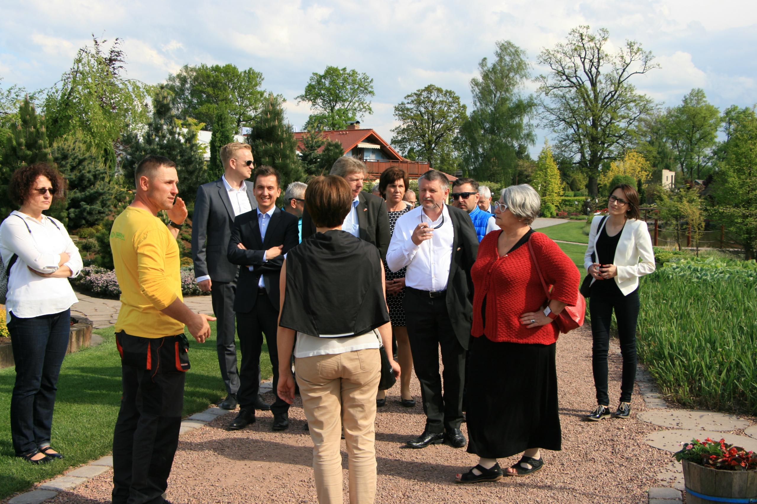 Das gemeinsame Besuchsprogramm setzte sich nach diesem offiziellen Teil fort: in Kapia´s Garten, einem in Familienhand befindlichen Pflanzenzuchtbetrieb, wurden die Gäste neben vorzüglichen schlesischen Köstlichkeiten mit einer außergewöhnlichen Gartenlandschaft überrascht. Die verschiedenen Abteilungen, u.a. Romantik-, Wald- und Bergregionen, zeigen u.a. englische und japanische Gärten, Heideland oder rauschendes Gras. Darüber hinaus gibt es einen Lehrpfad für Kinder und im Laufe des Jahres vielfältige periodische Veranstaltungen. Als vielfältig kann auch die Landschaft vor den Toren Pszczynas bezeichnet werden. Vor dem in der Ferne auftauchendem Höhenzug der Beskiden breitet sich ein riesiger Stausee aus. Der Stausee Goczalkowice ist der größte in Südpolen, ein riesiges Wasserreservoir, welches Trinkwasser für rund 3 Mio. Menschen der Region bereit hält. Er entstand zwischen 1950 und 1955 nach Aufstauung der Weichsel und dient gegenwärtig neben der Trinkwasserlieferung auch dem Hochwasserschutz und als Naherholungsgebiet. Ansässige Fischer berichteten dem Landrat und seinen Begleitenden über die ungewöhnliche Fülle des Sees an Flora und Fauna und über ihr Unternehmen.