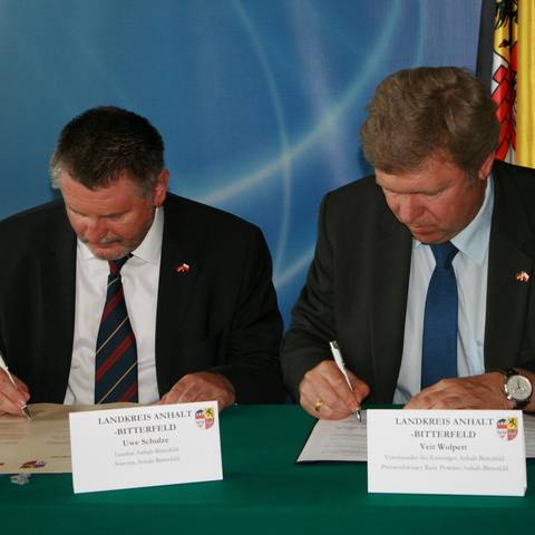 Nachdem sich die Kreistage von Pszczyna (Polen) und Anhalt-Bitterfeld dafür aussprachen, miteinander zu kooperieren und sich zu einem lebendigen Austausch auf den Gebieten Kultur, Sport, Bildung, Jugend, Familie, Soziales, Infrastrukturentwicklung und Wirtschaft verpflichteten, sollte nun in einen engeren persönlichen Kontakt getreten werden. Anlass gab die feierliche Unterzeichnung der Partnerschaftsvereinbarung durch beide Landräte, Pawel Sadza und Uwe Schulze, unter Mitzeichnung der beiden Kreistagsvorsitzenden, Barbara Bandola und Veit Wolpert, die am 12. Mai 2016 in Psczcyna stattfand. Umrahmt wurde der Festakt von einem knapp zweitägigen umfangreichen Besuchsprogramm.