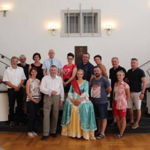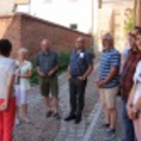 Bei glühender Hitze begaben sich am ersten Tag des Besuches alle Teilnehmer auf einen Stadtrundgang durch das 1000-jährige Zerbst/ Anhalt. Nach dem offiziellen Willkommen durch den Bürgermeister der Stadt, Herrn Dittmann, erfuhren die Gäste Geschichte und Geschichtchen über Roland, die Butterjungfer, die historische Stadtmauer, Kirchen und Klöster. Krönender Abschluss war der Aufstieg zum Turm der St. Nicolai Kirche mit einem grandiosen Ausblick auf die Stadt und die Umgebung.